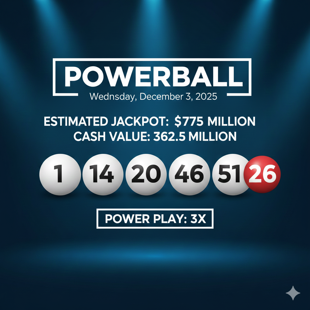 Powerball Jackpot Soars to $820 Million After Wednesday’s December 3 Drawing